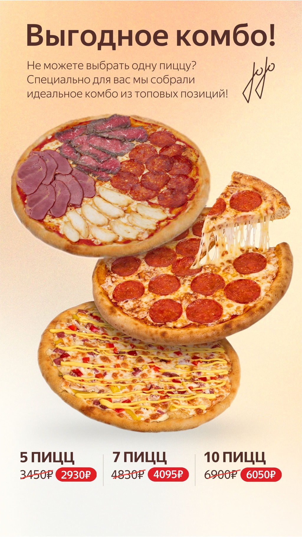 Ростбиф, конина к/в, куриное филе, пепперони, моцарелла, пармезан